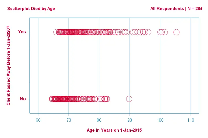 - 除了一位 83 岁以上的客户外,所有客户都在未来 5 年内去世了;