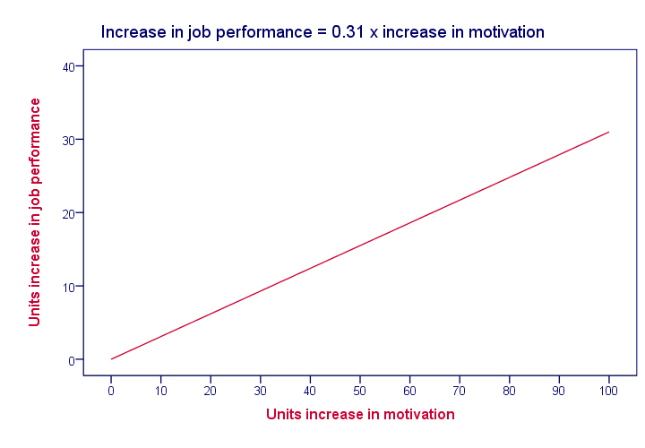 例如,我们的动机测试提高 1 分与我们的工作表现测试提高 0.31 分相关。这意味着 - 平均而言 - 在动机方面得分高 1 分的受访者在工作表现方面得分高 0.31 分。我们稍后会回到 b 系数。