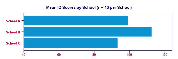 为了更清楚地说明问题,让我们在简单的条形图中可视化每所学校的平均智商分数。