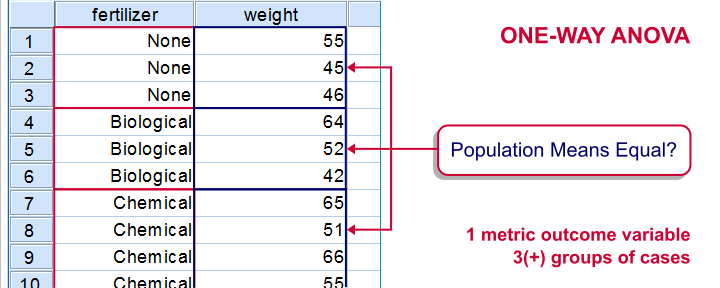 ANOVA (Analysis of Variance) - 即“方差分析”的缩写 - 是一种统计技术,用于检验 3 个或更多个总体均值是否相等。两种最简单的情形是: